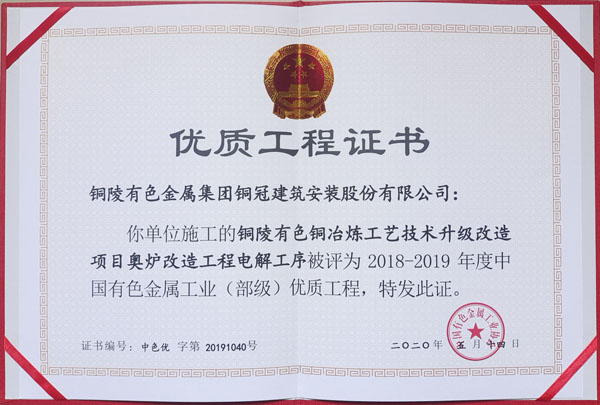 銅陵市2020年優良工程(銅陵有色銅冶煉...