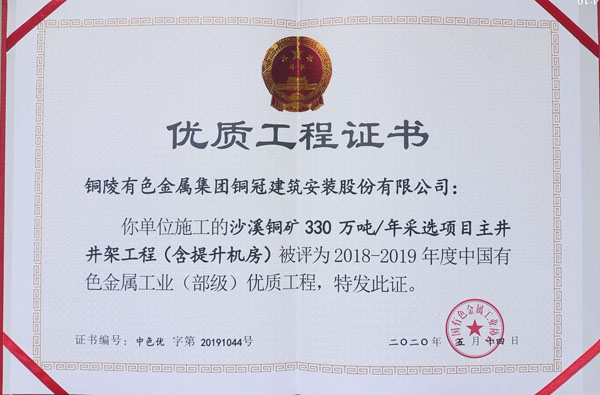 沙溪銅礦采選項目主井井架工程(部優)