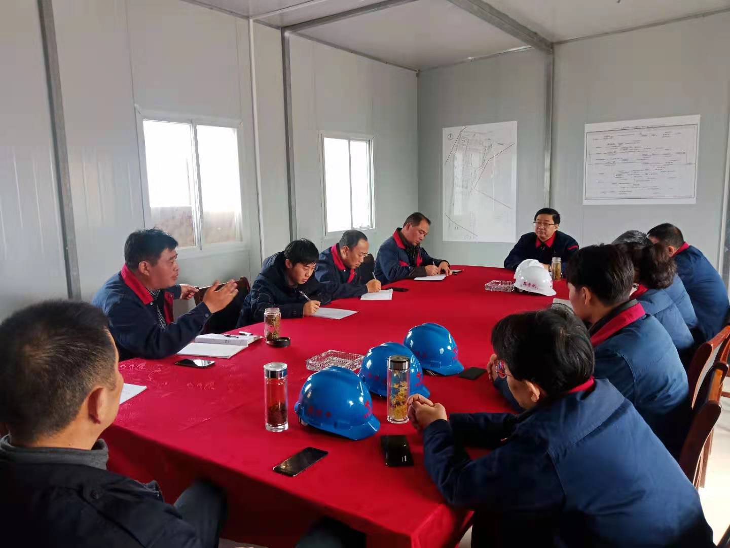 會上,項目經理王家俊匯報了項目施工進展、安全生產、疫情防控等工作情況。王伍升充分肯定了項目部各方面工作,贊揚項目部能夠從細節入手,以匠心精神打造精品工程標桿,展現了銅冠建安作為國企應有的社會責任感和品牌影響力,并對全體項目管理人員及勞務施工人員表示感謝。他強調,一是要繼續做好疫情防控工作,堅守疫情防控和安全生產兩條底線;二是科學合理安排施工計劃,齊心協力加快項目建設進度,保質保量按計劃完成建設任務;三是公司各部門、項目部要加強協調配合,積極主動作為,及時解決工程建設中遇到的困難和問題,努力為工程順利推進創造優良環境,要在打造精品工程的同時,全力推進項目建設。